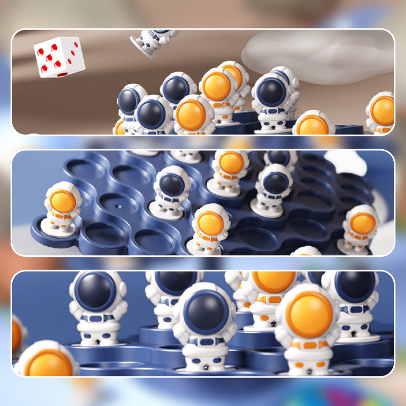 Spēlētājs met kauliņu un, pēc iegūtā skaitļa, novieto mazo astronautu norādītajā vietā. Tas spēlē ievieš veiksmes un neparedzamības elementu. Noslēgumā lielais griežamais ritenis parāda, kurš zaudē un saņem “sodu”.