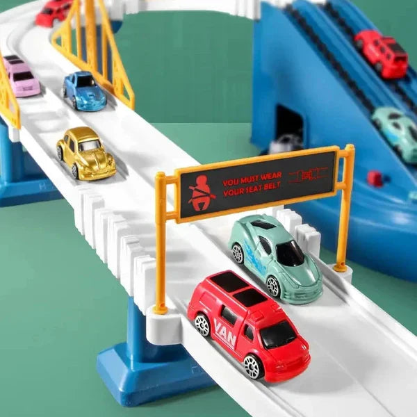 Elastīgie trases posmi viegli savienojas, tāpēc bērns var mainīt trases formu ikreiz, kad spēlē – no garas līkumotas trases līdz apļiem vai pat vairāku līmeņu konstrukcijām. Tas attīsta radošumu, loģisko domāšanu un roku veiklību.