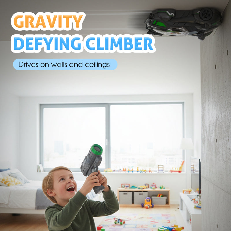 Šī mašīnīte burtiski „izaicina” gravitāciju, pateicoties spēcīgai vakuuma piesūkšanās tehnoloģijai. Tā stingri pielīp pie vertikālām sienām un pat griestiem, pārvēršot jebkuru telpu par aizraujošu trīsdimensiju trasi ar neierobežotām radošās spēles iespējām.