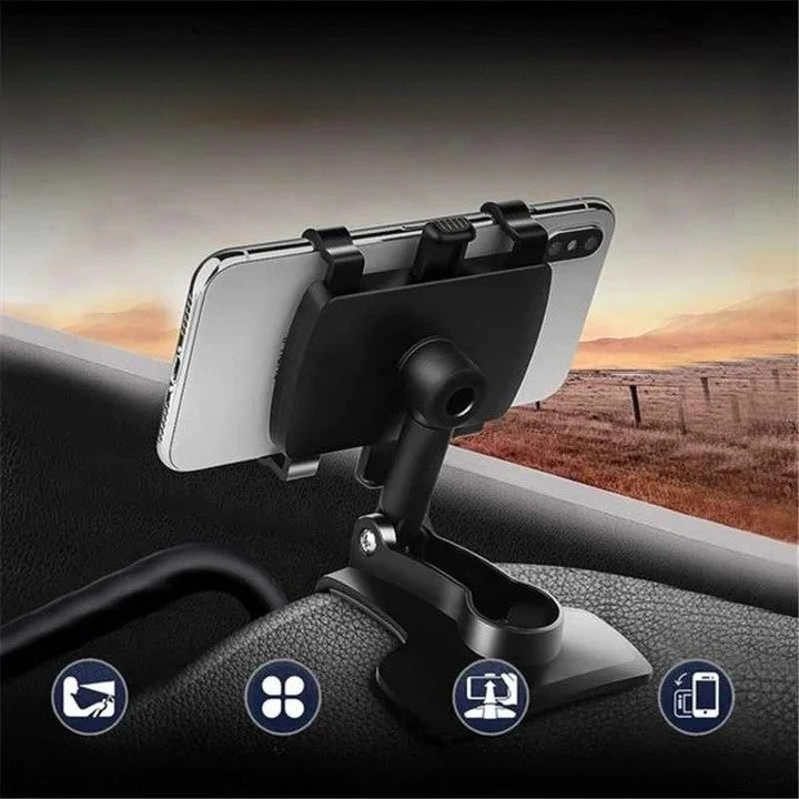 Pateicoties 360° pagriežamai galvai, varat viegli pielāgot tālruni ideālam skatīšanās leņķim. Vienkārši pārslēdzieties starp vertikālo un horizontālo režīmu – ideāli navigācijai, zvaniem vai video skatīšanai. Šī elastība ļauj baudīt skaidru skatu un drošu braukšanu bez rokām.