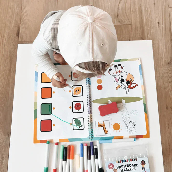 Šī izglītojošā burtnīca bērniem atver krāsainu pasauli, kur prasmes attīstās caur spēli un vienkāršiem uzdevumiem.