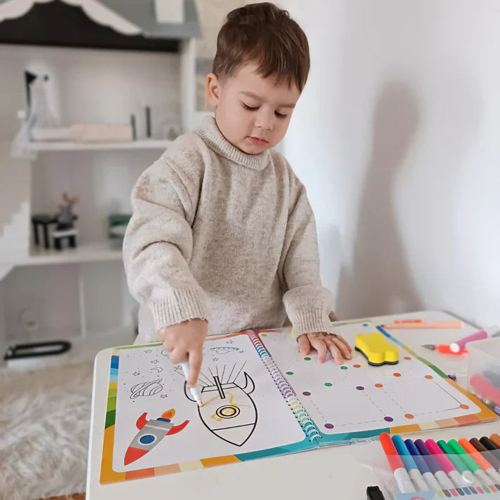 ✅ Vispusīga attīstība – veicina sīko motoriku, koncentrēšanos un pirmās rakstīšanas prasmes.
